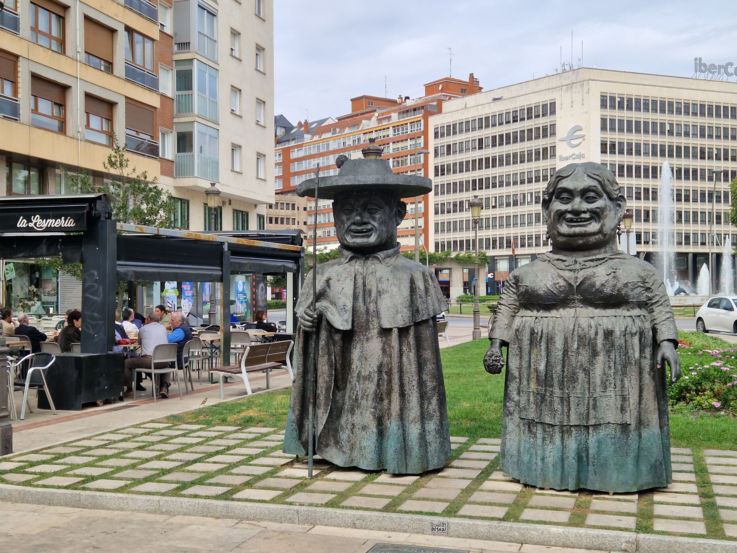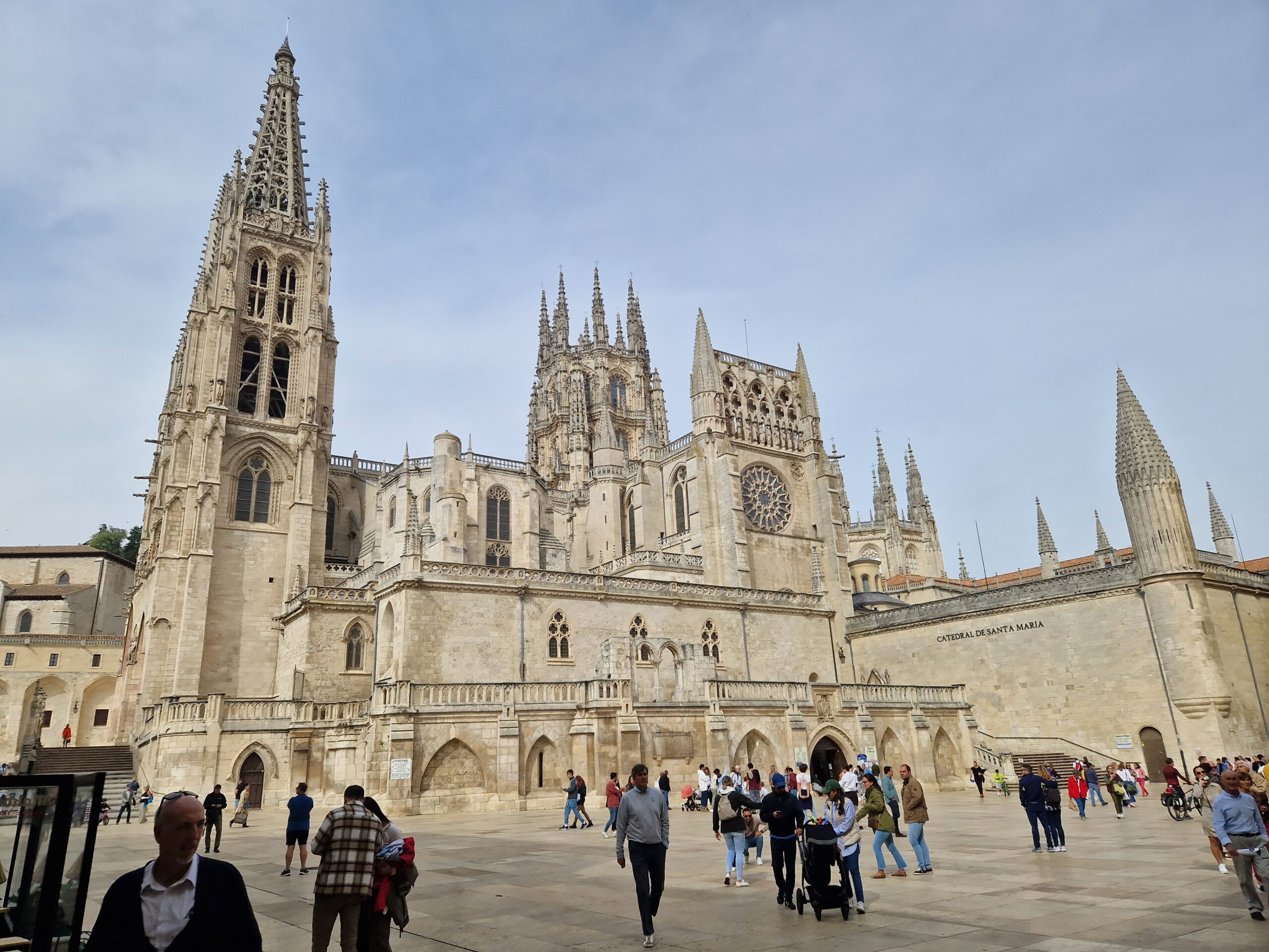 Wanneer je op de stadscamperplaats staat kan je met de bus of op de fiets naar het centrum. Aan de andere kant van waar je de parkeerplaats oprijdt, loopt het riviertje, Río Vena. Daar loopt een fietspad langs waarover je vrij rustig naar het centrum rijdt. Je komt uit bij de rotonde met de dolfijnen. Achter het beeld van de hond zie je de markt, die altijd leuk is om te bezoeken. Ga de stad in via het beeld Los Gigantillos, een kwestie van smaak natuurlijk, maar ik vind het prachtig. Meteen links staat de Iglesia de San Lesmes Abad, maar let op dat je geen overkill aan kerken krijgt: de kathedraal van Burgos is een absolute must-see, dus als je één kerk per dag genoeg vindt, sla San Lesmes dan over. Ga lekker dwalen door de oude straatjes aan de rechterkant en vroeger of later kom je bij de flink gotische kathedraal uit, het absolute hoogtepunt van Burgos. Gelukkig zijn er op het plein voor de kathedraal talloze terrasjes, want je zal even tijd nodig hebben om het uitzicht op misschien wel de mooiste kathedraal van Spanje op je in te laten werken.