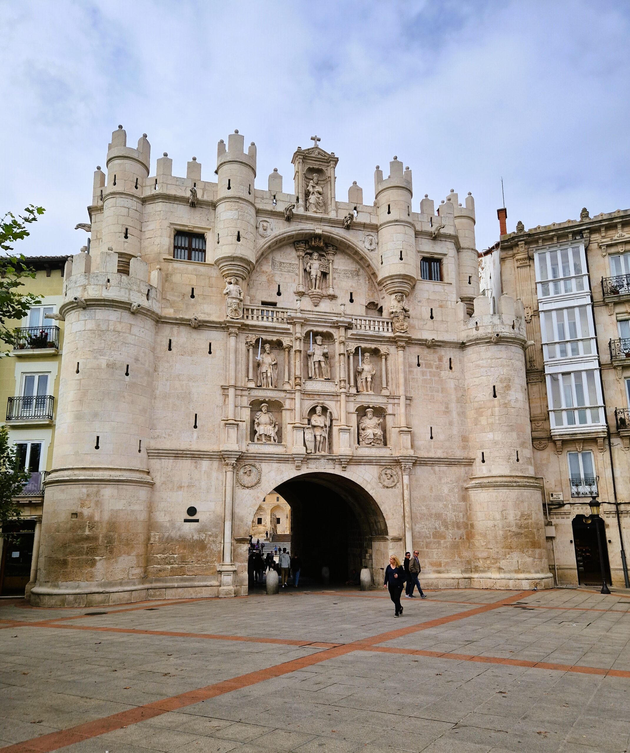 Wanneer je de kathedraal bekeken hebt, steek dan het plein over naar de hoek rechtsachter en ga onder de poort door. Ben je er doorheen, draai je dan om en sta versteld van dit kunstwerk. Dit is de Arco Santa María, een van de oorspronkelijk acht stadspoorten.